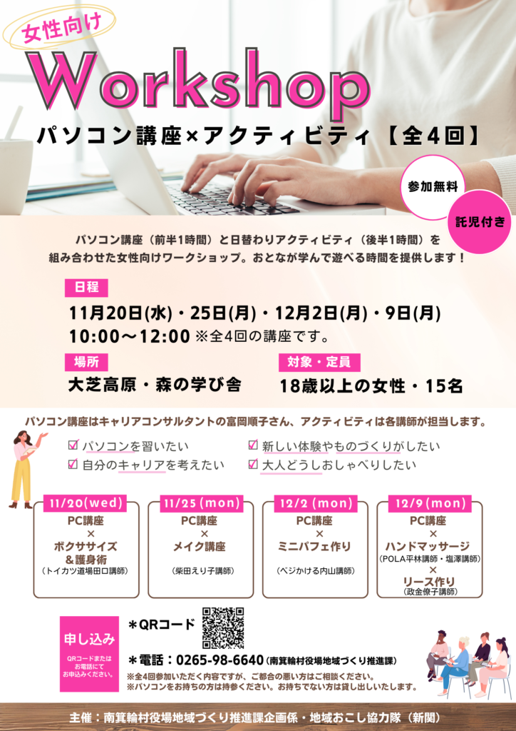 前回好評だった女性向けのワークショップを今年も開催します。
